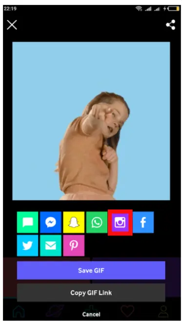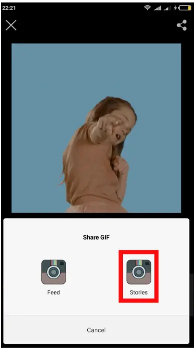 Choose to share the GIF using Instagram Stories.