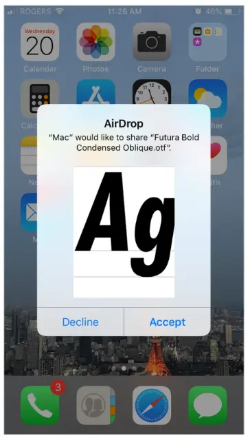 Once downloaded, use AirDrop to pull your fonts from the cloud and save them to your device. Ensure that you keep the font file format as .OFT.