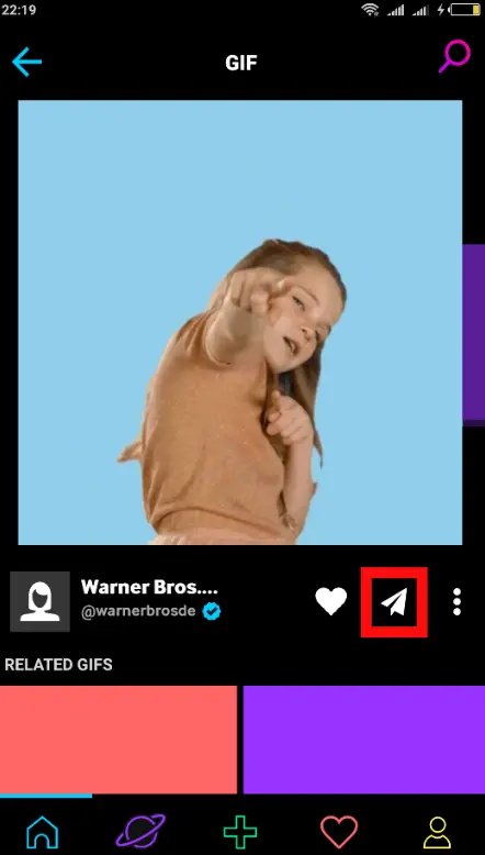 Locate the GIF you’d like to use and tap the send button.