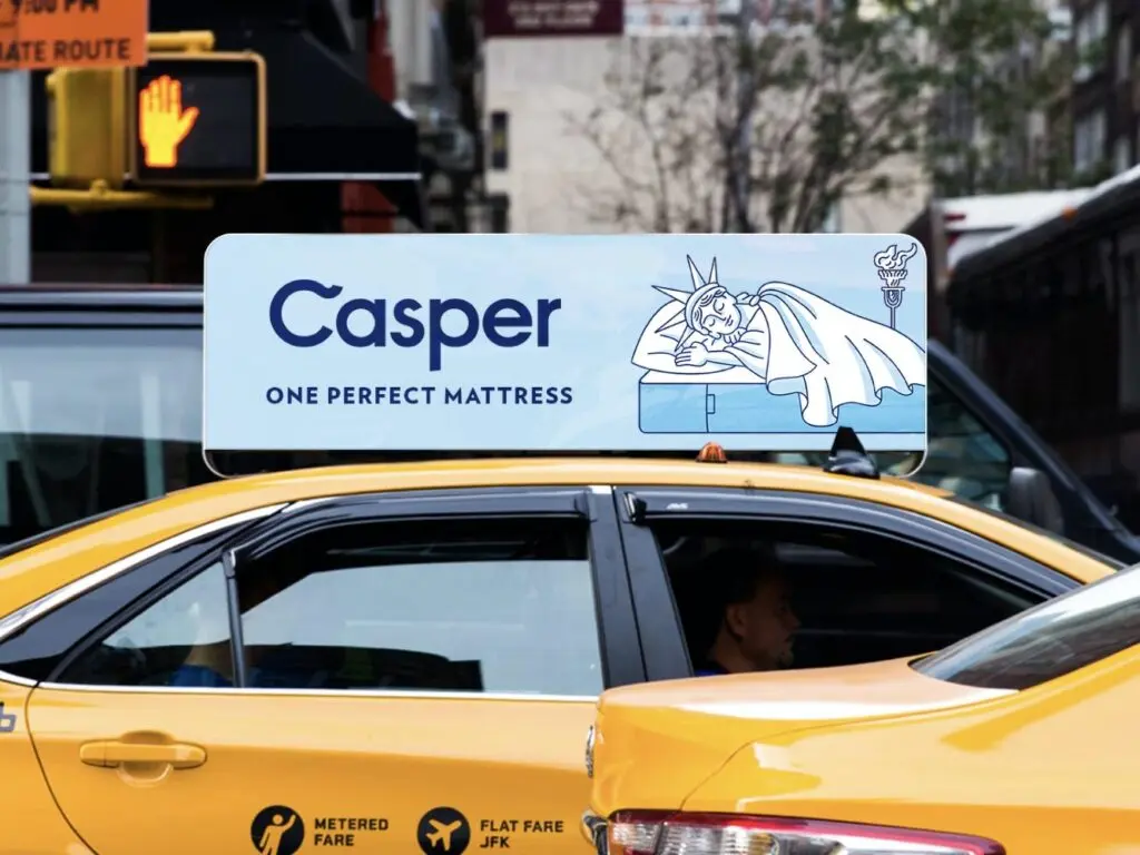 Casper is a well-known DTC (direct-to-consumer) mattress brand. In their integrated marketing campaign "The Perfect Mattress," Casper advertised on billboards, subways, taxis, and more, using the same consistent imagery and messaging.
