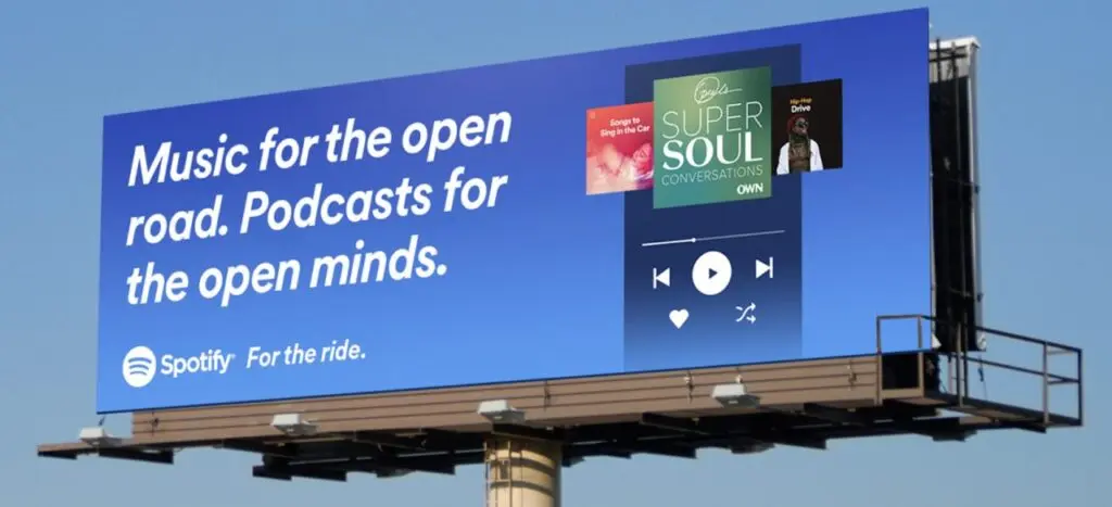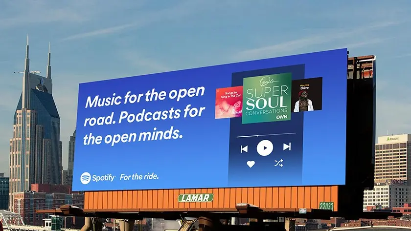 Spotify's 2019 integrated marketing campaign "For the Ride" tapped into the very relatable experience of sitting in your car or taking another spin around the block to finish out that great song. Not only were there commercials like the one below, but Spotify also used billboards. Yep, that's right. A streaming music giant opted for OOH channels. And it works—where else do people spend most of their time listening to Spotify if not on their commutes where they're most likely to see billboards?
