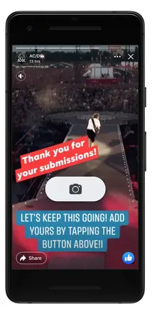 Sony Legacy and AC/DC used the Fan Reply Stickers in the testing phase. Around the 40th anniversary of the “Highway to Hell” album, they asked fans to show their own Duckwalk to honour the iconic dance moves of Angus Young. They received an overwhelming number of responses from fans and they also saw a lot of re-shares of their Story.