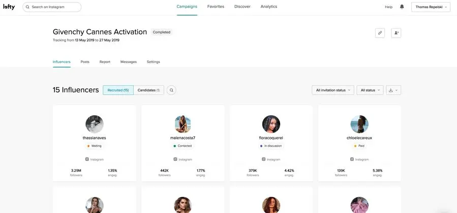 Once your campaign is underway, Lefty’s performance reporting really shows off the platform’s newfound focus on data and insights. It doesn’t just offer you numbers, but includes some plain language analysis to summarise how things went. It also gives you great insights into individual influencers’ performances, including the calculation of Earned Media Value for each one of them. At the end of every campaign, you’ll know how you did as a whole, but you’ll also understand—in financial terms—the impact of each person on an individual level. You’ll be able to start building lists of your most successful collaborations, while culling out the ones who didn’t meet expectations. As you start curating these collections of influencers with high EMVs, you’ll start getting more bang for your buck with each successive campaign.