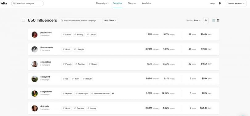 Lefty launched as a not-fully-formed platform, but our last look at it showed it was still very much a solid entry into the marketplace of Marketplaces. It took the basics further than many did: It had the ability to retrieve and track Instagram stories, which was a big deal at the time. It’s still a big deal, but Lefty was one of the first to do it. Its database of influencers wasn’t restricted just to those who’ve signed up for Lefty accounts. Like a true discovery tool, Lefty’s influencers are found by algorithms that comb through Instagram, indexing all the accounts that meet the minimum reach of 3,500 followers. This data is monitored and updated in real time, and their AI engine categorises the content and indexes the profiles of one million influencers and counting.