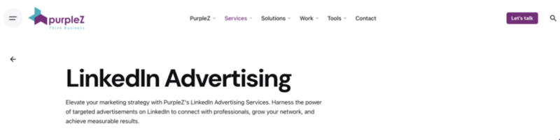 | PurpleZ | Small to Medium-Sized Businesses | LinkedIn advertising, creative content, dynamic ads, and lead generation | Known for optimizing ad spend and increasing ROI, delivering clear, results-driven strategies. |