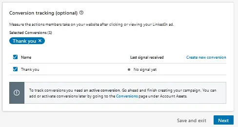 - Enable LinkedIn Insight tags, as explained in the previous section.
