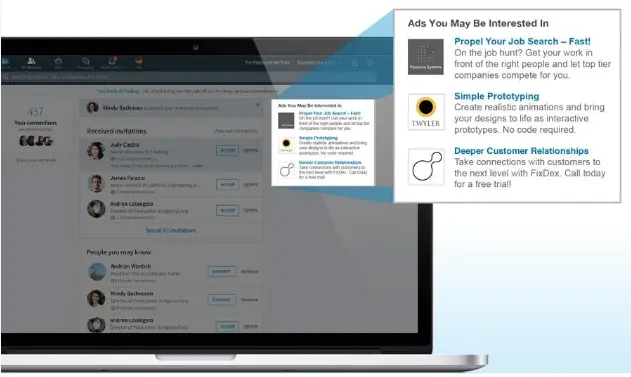 - Dynamic Ads: These are personalized according to a user’s browsing history, industry, role, and shared content.