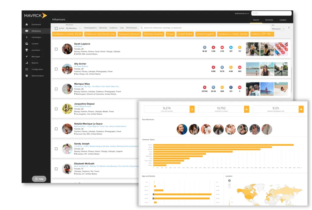 Later Influence supports the full spectrum of different influencer personas, including micro, macro and mega influencers. All that content the influencers create on your behalf is designed to get people back to your site to register or buy something. At that point, they can sign on, too, and you’ve now got direct marketing access to them—not just email but all of the data they’ve supplied to their social network.