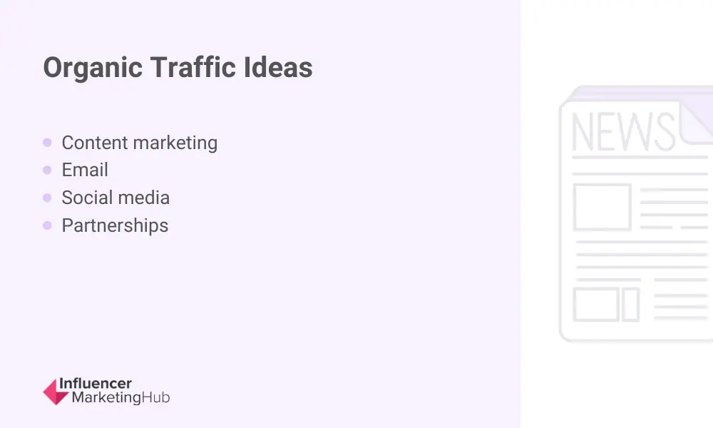 Organic traffic is generally considered to be "free" traffic. This is traffic that comes to your site without using paid promotion. Organic traffic tends to be slower, but it's invaluable in the long run, so we recommend getting started on building organic traffic right away. Let's take a look at some common ways to drive traffic organically.