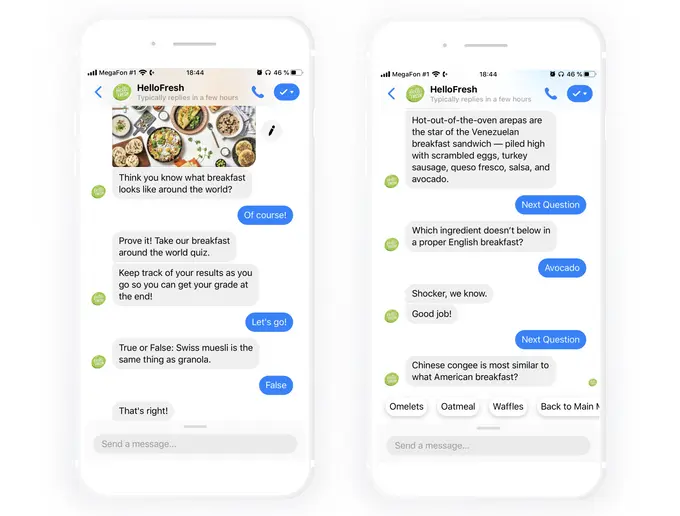 HelloFresh's Freddy is a fun way to interact with a brand. We especially loved this breakfast quiz that lets you test your knowledge about breakfast foods around the world and learn something new.