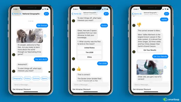 In addition to the Einstein chatbot, National Geographic used a quiz chatbot to engage users...