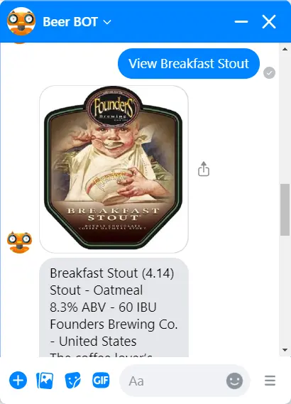 No matter what beer you're looking for, Beer BOT can give you all the info about it. And, you can even look up breweries!
