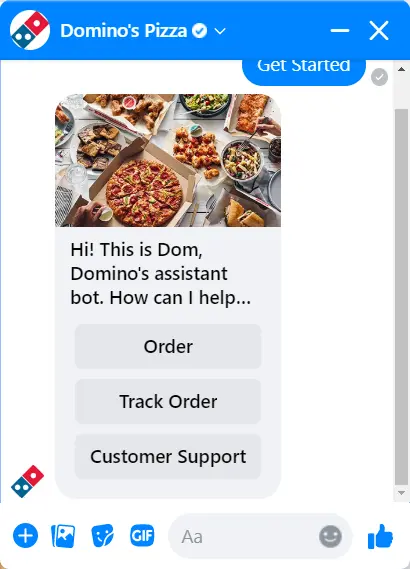 Dom, the Domino's pizza chatbot, is available on several different platforms as well as the Domino's website. You can use any platform to place an order and each platform tracks your recent orders.