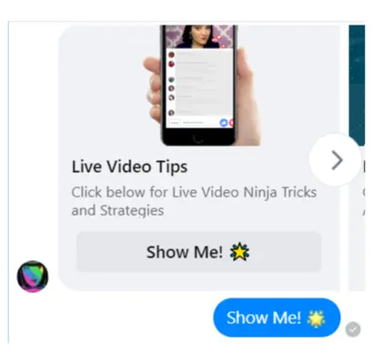 Different things happen depending on which option you choose. While choosing Increase Engagement takes you to a Facebook video, Building Bots will open up a teaching sequence within the chat window.