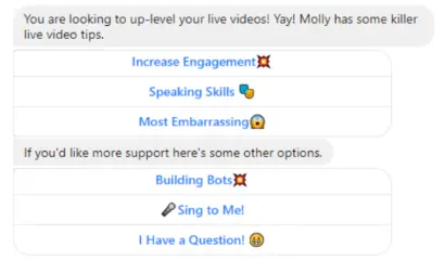 Once you make a choice, Mollybot gives you different options you can choose based on your goals: