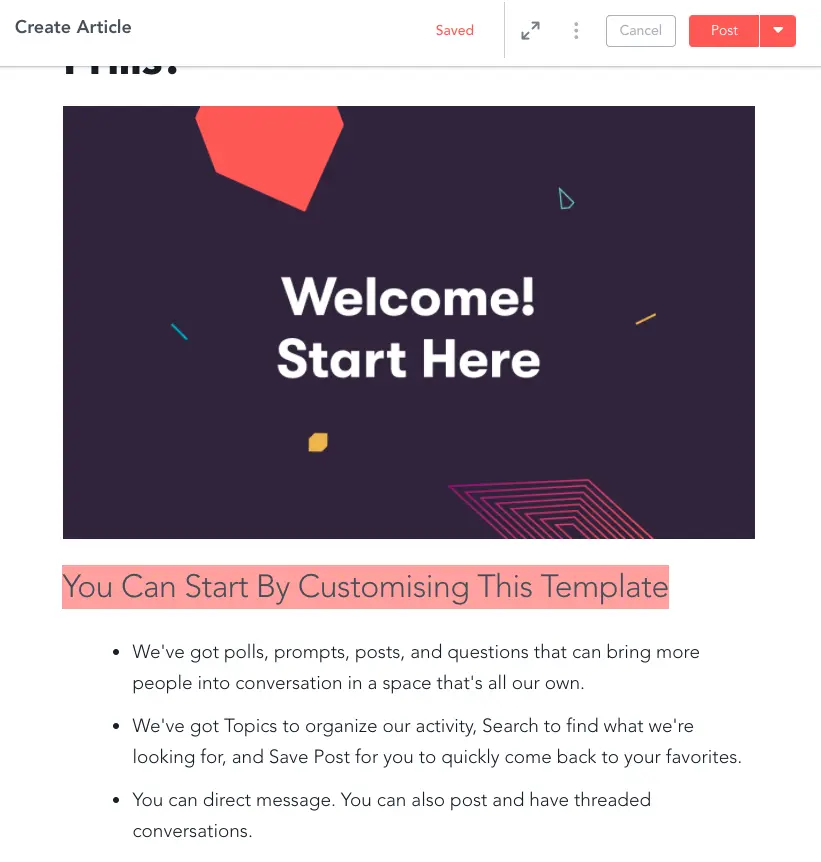 The checklist is a great resource; not only does it give you an idea of what you need to do to get started, but it teaches you how to do it all each step of the way with contextual help and links to their support articles. Another excellent way that Mighty Networks grounds new users is to automatically enroll them in the Mighty Hosts network. The network is filled with posts about how to get the most out of your own network while connecting you with other people who are in the same boat. But it also serves as an example, showing you how you can use your own network to inform and connect with your audience.
