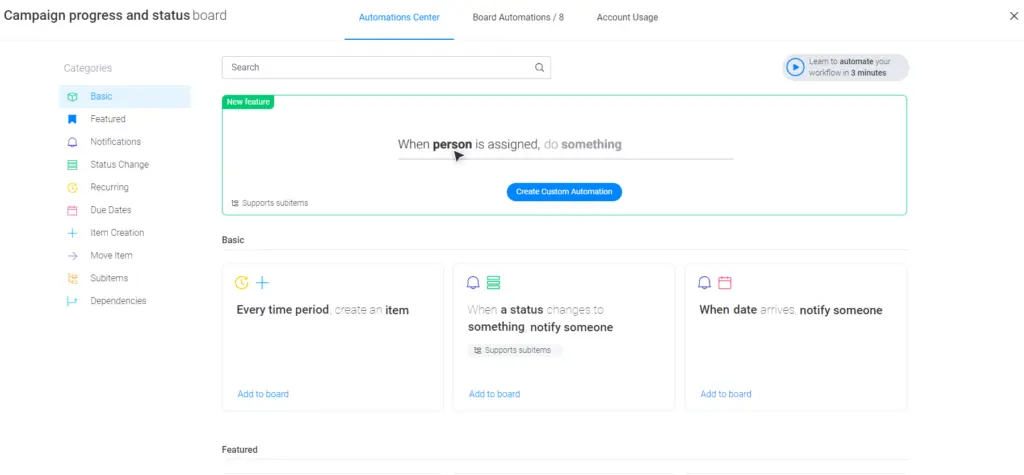 The idea is to build boards that represent your workflow. You can then add code-free automations to your boards to minimize the chances of human error and focus on the work that makes an impact.