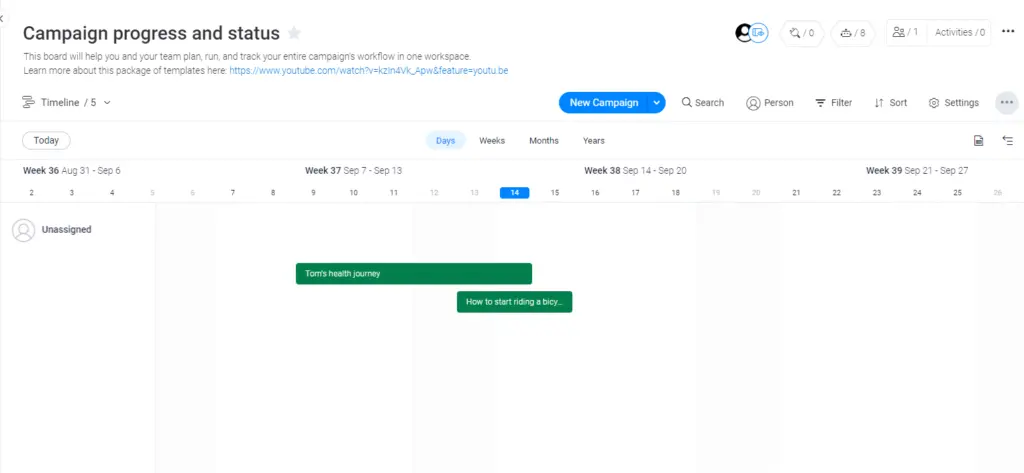 However, the critical point is that it is useful for far more than just social campaigns. You can incorporate your entire marketing activity into Monday.com, including the organization and assembling of your Marketing Plan.
