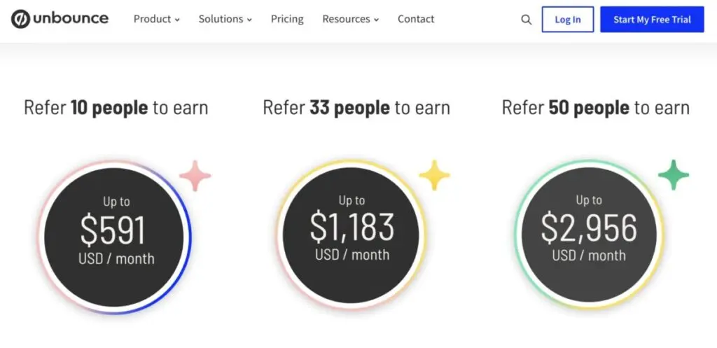 Unbounce offers a tiered incentive system that allows affiliates to earn up to a certain amount based on the number of referrals. This could compel their influencer partners to work harder toward referring people to the company.