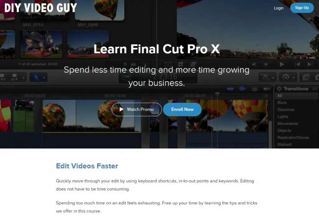 Videography is a booming industry, one with lower barriers to entry than ever before. But just because anyone can pick up the camera and start recording, that doesn't mean they're product will be polished or perfect. Caleb Wojcik knows this and created an online course to help videographers turn their raw video into works of art. This message shines through in the header of his online course landing page. He sells the major benefit that his course will help you spend less time editing and more time growing your videography business.