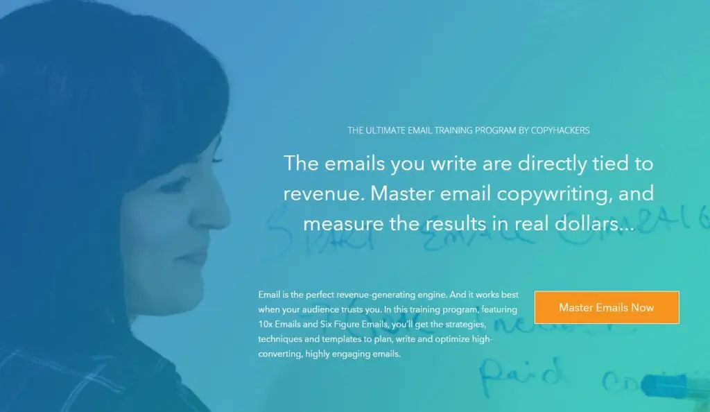 Joanna Wiebe is a well-known copywriter and copywriting coach. On her landing page she sells a simple but big idea: mastering email copywriting and learning how to measure your results in revenue is possible. This matters to any business owner who is looking for ways to grow their bottom line. Wiebe's artfully identified one of the key drivers that most struggling with email marketing encounter. By zeroing in on the idea that email marketing is somehow unclear or hard to do, she's flipped that notion and made it possible to think of yourself as a master email copywriter that turns words into dollars.