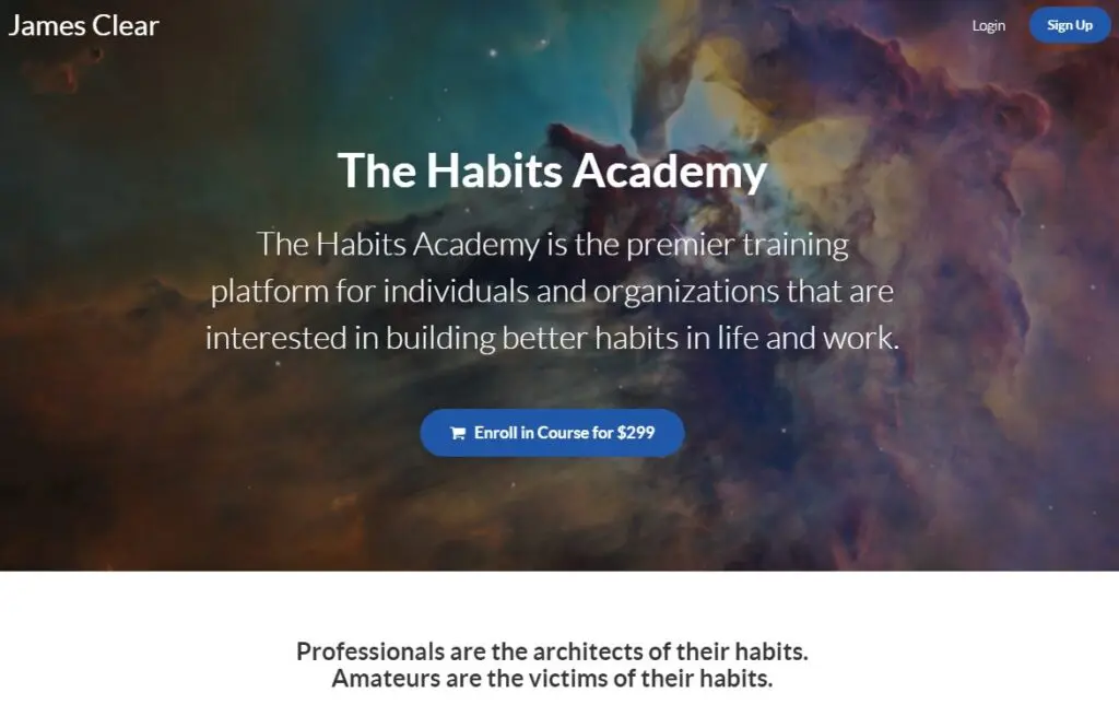 The Habits Academy was founded by James clear. Clear is known for his study of habits and the science behind developing the right ones to propel you toward success. The Habit Academy online course landing page includes a powerful message that takes readers on a journey. Clear asks the reader to imagine two versions of themselves, five years into the future. He then begins to paint a picture of what a life filled with positive and effective habits would look like. Next, he juxtaposes a bright future alongside a life without good habits. And this is what makes for powerful copywriting. In under a minute, readers immediately experience a call to action to become the best selves. Clear uses powerful psychological triggers in a positive way, appealing to vanity and a strong desire for self-actualization.