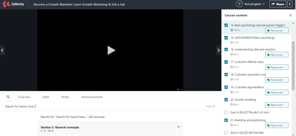Completing lectures is one of the most satisfying experiences. Udemy’s gone the extra mile to make learning feel as progressive as possible. Once you’re done with a lecture, the video player automatically queues the next lecture and the previous lecture receives a checkmark.