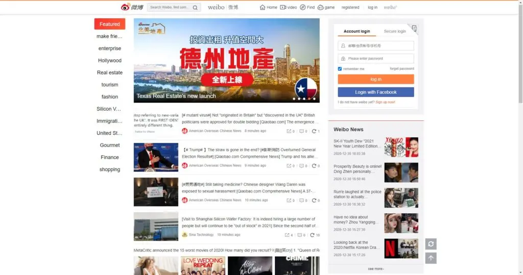 Weibo, or Sina Weibo, is like a Chinese version of Twitter (Twitter isn't accessible in the country). Since 140 characters in Mandarin can convey much more information than the same number of characters in English, Weibo is considered a microblogging platform and, in fact, is the most popular blogging platform for Chinese users. Companies who use Weibo can share information-laden posts with Weibo users who engage on the platform with influencers, celebrities, and others with similar viewpoints.