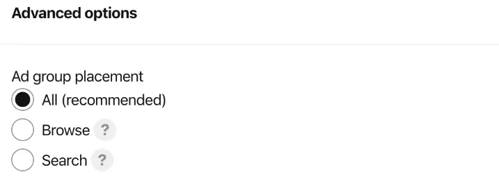 This basically means selecting where you want to show your ads on Pinterest. The two main options are in the news feed or search results. For the former, you need to select the “Browse” option while for the latter you should select “Search” option.