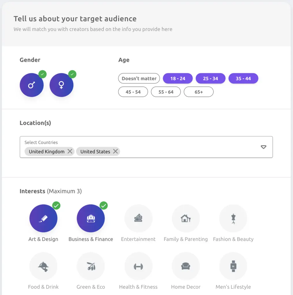 Marketplaces spend a lot of effort trying to get creators to join up and populate their databases. A voluntary opt-in is the only way they can import their data, but that means a relatively small talent pool to choose from. Some will build algorithms to scrape for possible influencers, but that just means millions of profiles with very limited data. If the point of the marketplace is efficient outreach—to find new audiences in a quick and streamlined way—then influencer discovery is a superfluous step. You really just need to find those audiences.