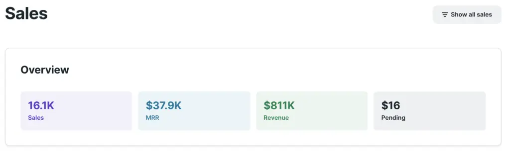 To manage your revenue and track exactly how well the course is doing, Podia has created a Sales tab. In it, you'll see an overview which includes the number of sales of your course, your monthly recurring revenue, total revenue, and a total of any pending sales.