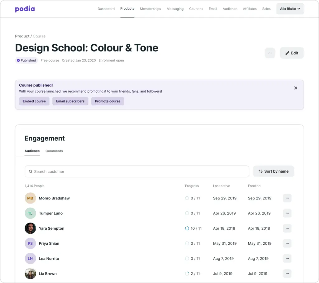 That said, we like Podia's collection of features. From offering coupons and memberships to tracking sales and converting customers into affiliates, the platform is built to help you sell more courses. If you're looking for an all-in-one solution to build, market, and manage your next course, try Podia for 14 days.