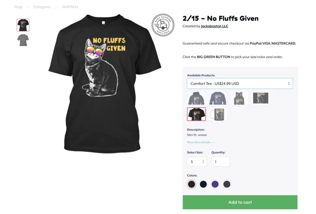 However, what it lacks in customization, it makes up for in shipping options. Another notable feature of Teespring is that it offers same-day printing and two-day shipping options.