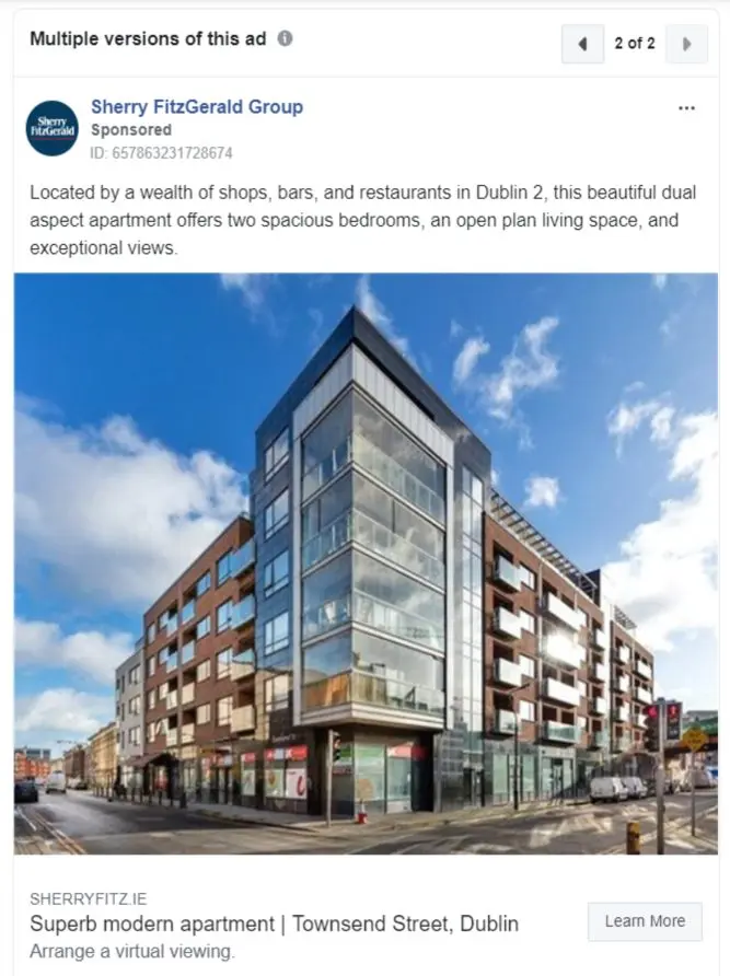 Here’s an example of an ad by Sherry FitzGerald Group that has multiple versions for A/B testing.
