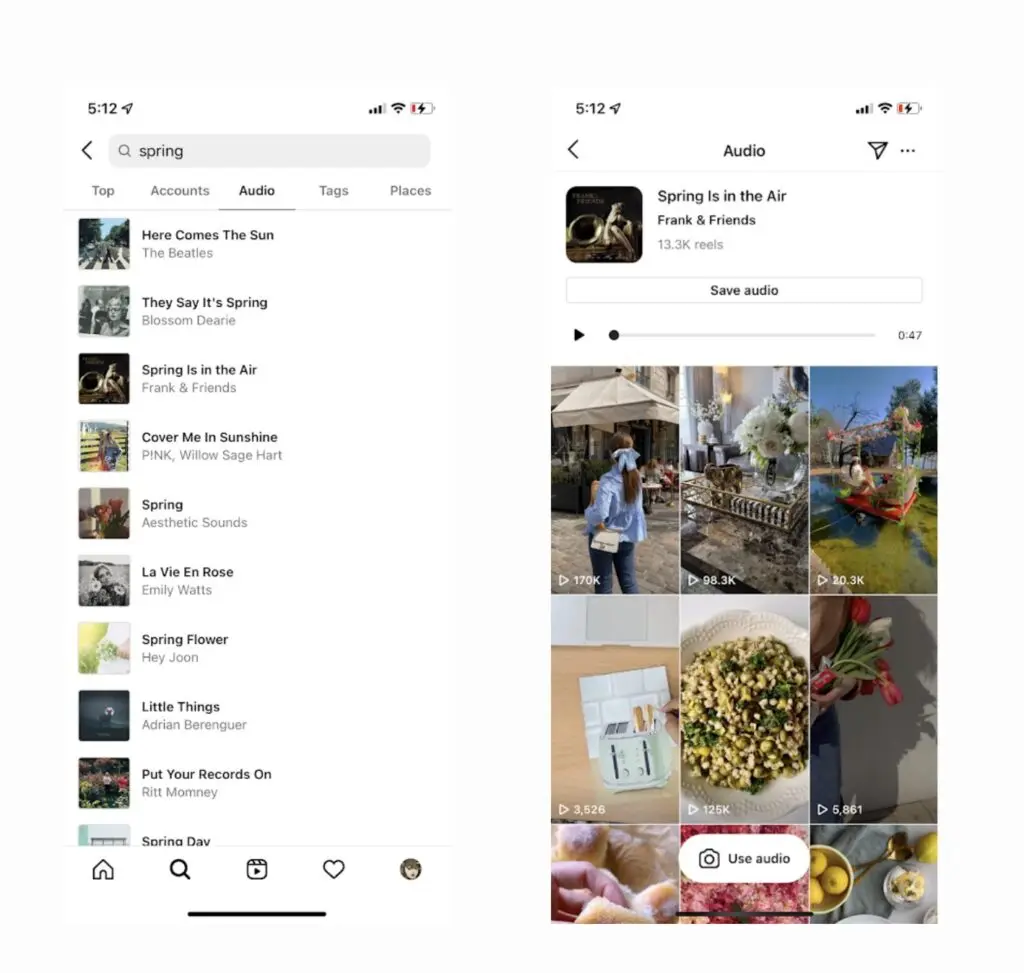 Additionally, Instagram allows you to conduct a search for audio tracks and discover Reels made using those tracks. This gives you the opportunity to get your content in front of users who are searching for certain audio tracks on the platform. Ideally, make the most of trending sounds and popular songs in your Reels so that you can tap into the high search volumes for those audio files and improve your chances of attracting more viewers for your Reels.