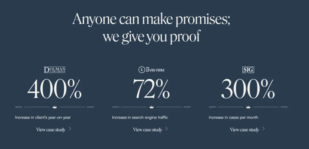 Case studies and testimonials are the evidence of an agency’s efficacy. Look for detailed case studies that show before-and-after scenarios, including specific metrics like traffic improvement and keyword ranking changes. Testimonials should be from identifiable clients, preferably from the legal sector.