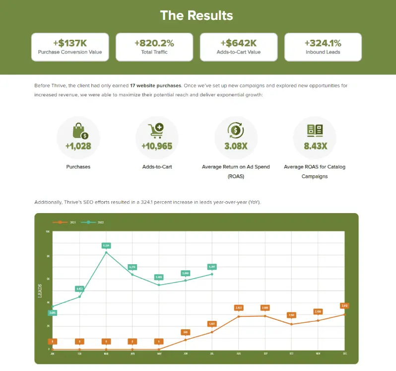Thrive Internet Marketing Agency | Dallas, Texas | $1,000 per campaign | Expertise in scaling online stores |