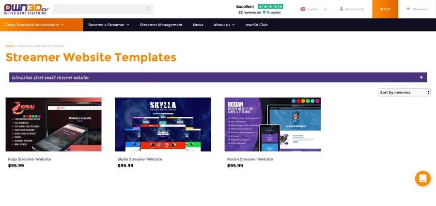 Another great tool from own3d.tv, streamers can use this to set up their own website dedicated entirely to their Twitch stream. It can do the obvious thing—embedding your Twitch stream directly in the website—but also has places to create a bio, post your broadcast schedules, and place sponsor and partner logos. Don’t have any sponsors or partners yet? Having a website will greatly increase your chances. Check out the different templates and live demos here.