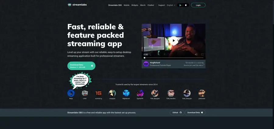 OBS goes beyond the standard split-screen or picture-in-picture layout to give streamers the ultimate control over their productions. There’s support for multiple cameras, and everything is customisable: from the layout of what’s on your screen, to the transitions between scenes, to the any of hotkey you’d want to program for quick access to commands. Many OBS templates are available now as well. And, as the word “Open” in its name implies, OBS can integrate with third-party plugins to take the broadcast even further.