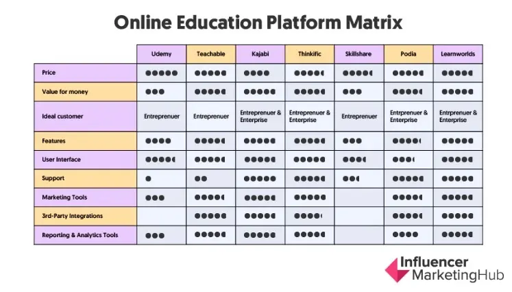 The subscription model, therefore, appears less desirable than the option of selling courses at a set fee. Set fees allow you to generate more income over time by selling to individual customers. Pricing aside, Skillshare also lacks many of the standout features that help instructors build effective courses. There are no analytics or reporting features, student engagement is limited to one tab under your course, and affiliates can’t develop direct relationships with instructors, preventing you telling who is helping drive more sales or revenue to your courses.