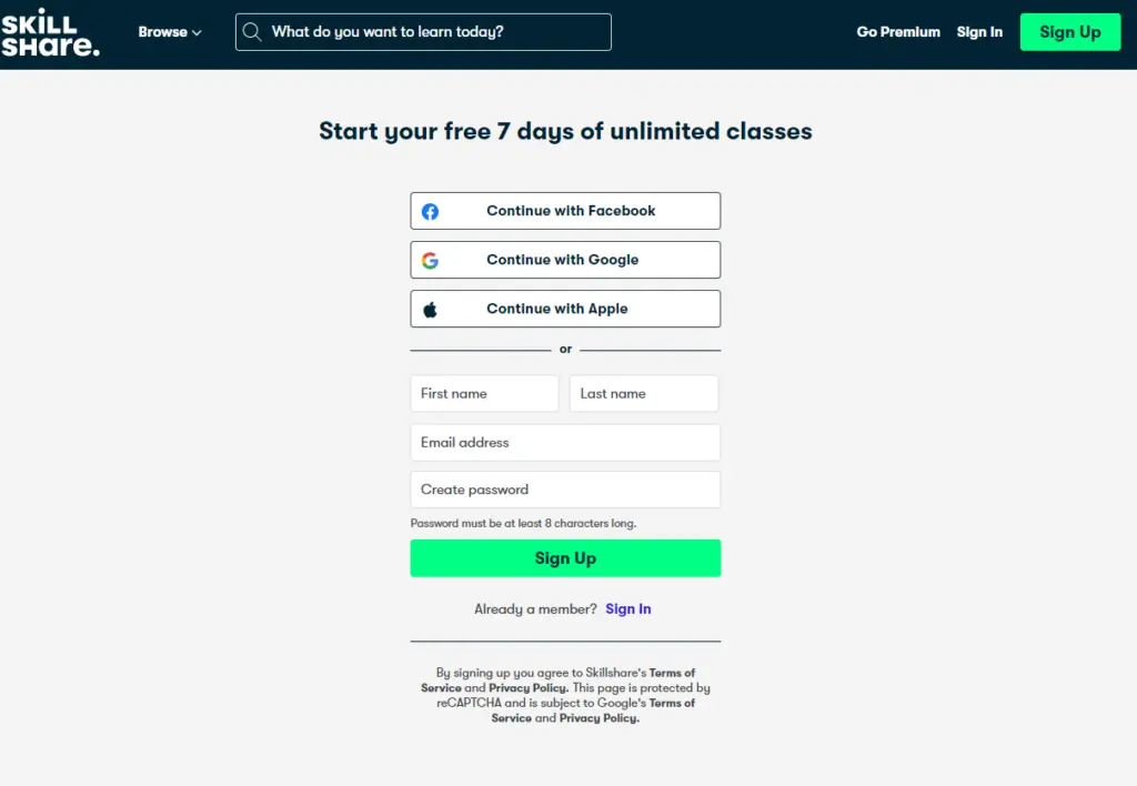 What's important to note about signing up with Skillshare is how their accounts work. You create one account that provides you unlimited access to thousands of courses on the platform. To become an instructor, you simpky toggle between instructor account and your normal student account (more on this later).