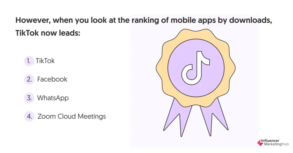 However, when you look at the ranking of mobile apps by downloads, TikTok now leads: