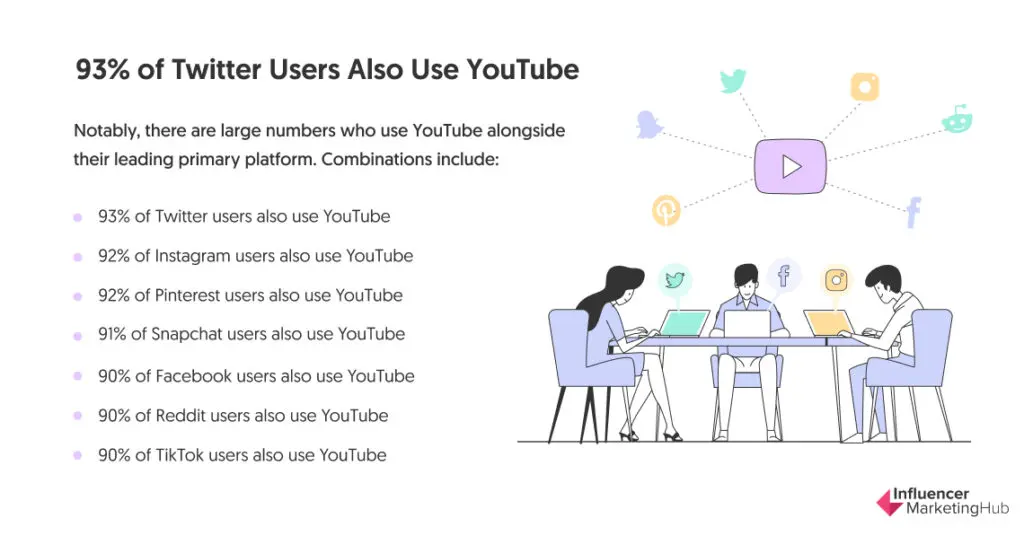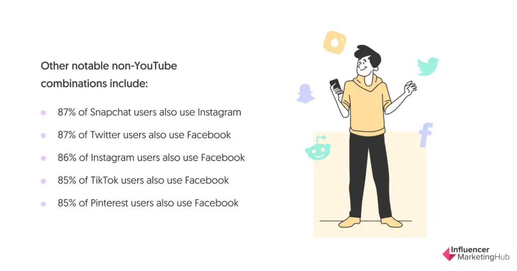 Notably, there are large numbers who use YouTube alongside their leading primary platform. Combinations include: