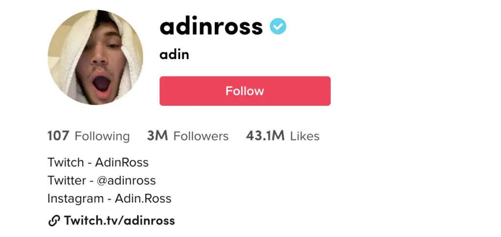 Adin is another Twitch streamer who has found notoriety on TikTok. Here, he mostly shares personal clips and has been known for attracting criticism from other influencers. On average, his videos get millions of views