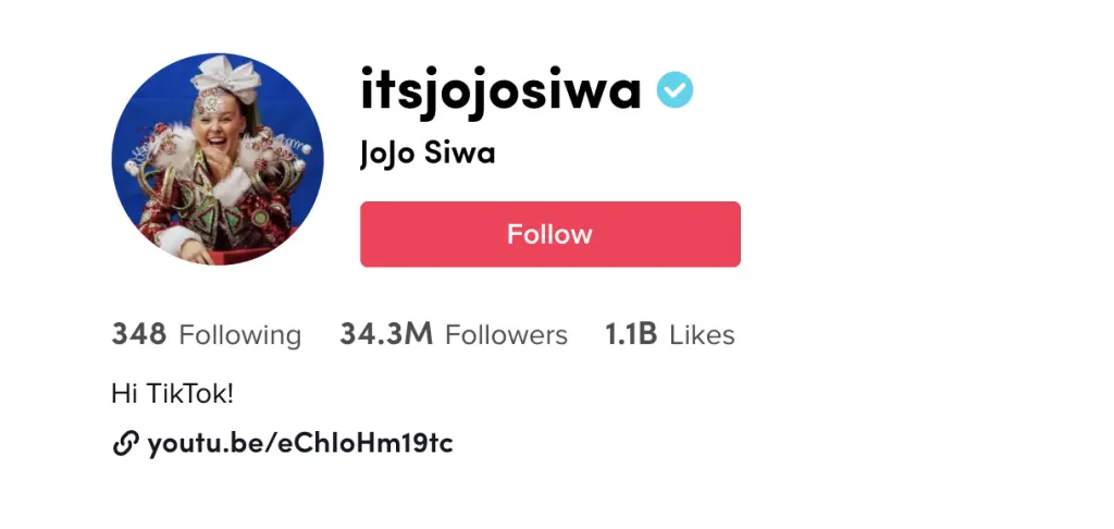 JoJo (aka Joelle Joanie) Siwa is an actress, singer, and dancer. The American YouTube personality first captured attention when she starred in Dance Moms with her mother. Her singing career has also taken off and she has released two singles already. On TikTok, she boasts more than 34 million “Siwanatorzs” (her affectionate name for her followers). On top of that, her videos in which she mostly dances have received more than 1.1 billion likes.