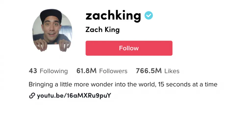 Before Zach King (aka Zachary Michael Kings) became one of the top TikTok social media influencers to follow, his YouTube channel reached viral status. Here, he shared tutorials about Final Cut Pro, a video editing software. In 2016, he expanded his online presence to TikTok where he continued the success of his “digital sleight of hand” videos. His videos have won him several awards including the YouTube’s NextUp Creators Contest.
