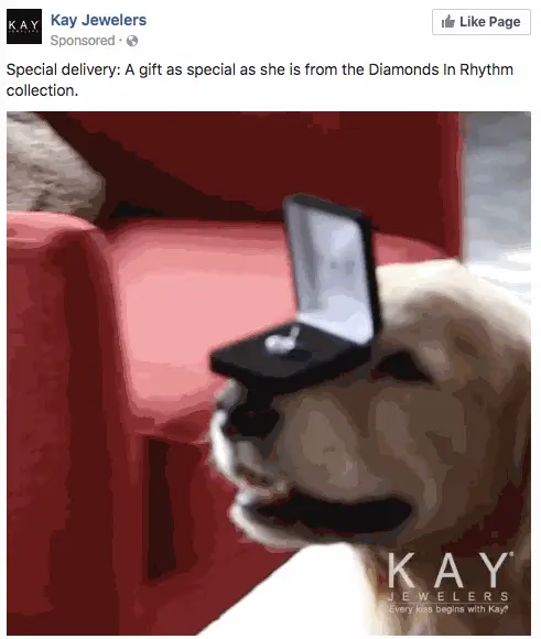 Example: Kay Jewelers used a short video ad to evoke positive emotions from receiving jewelry as a gift. The ad didn't need sound or captions—just a well-trained dog and a happy ending!