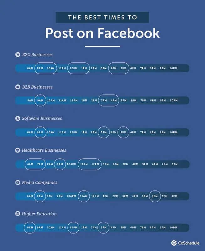 CoSchedule has compiled the results from 25 studies to come up with a guide to The Best Times to Post on Social Media. However, they recognize the differences between firms by splitting their results across industries. You should be prepared to experiment until you find the schedule that best pleases your followers.