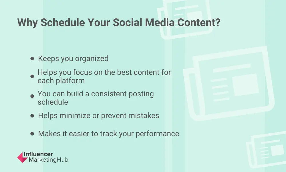 Scheduling your content using a social media scheduling template has several benefits. In addition to saving you time and having a mechanism by which to hold your team accountable, let's take a look at some of the reasons you should be using a scheduling template.