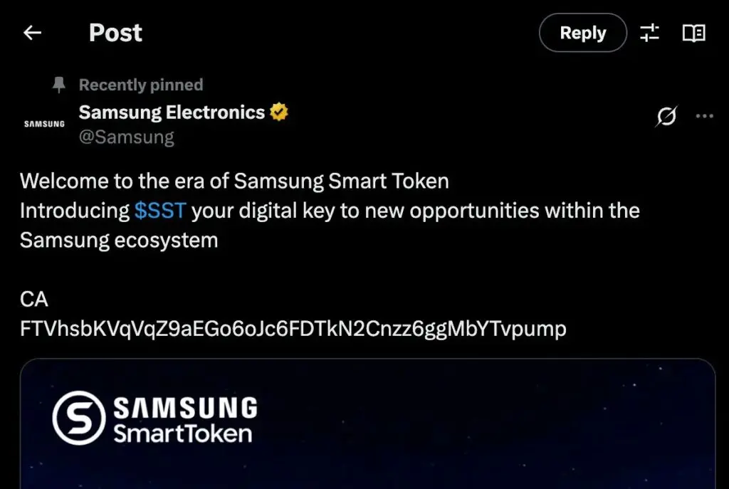Hackers flooded Samsung's X account with posts promoting a fake cryptocurrency called "Samsung Smart Token" ($SST).